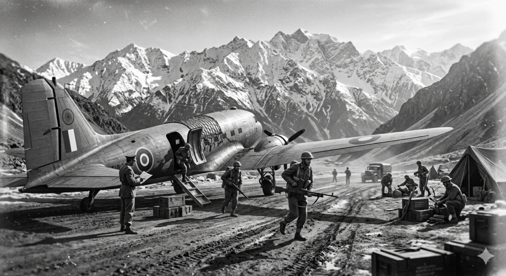 Before the ink on both nations’ independence was dry, they were already at war. In October 1947, Pakistan-backed Pashtun tribal militias poured into Kashmir. Faced with conquest, Maharaja Hari Singh signed the Instrument of Accession to India — and within hours, Indian paratroopers were landing in Srinagar in one of history’s most dramatic military airlifts.