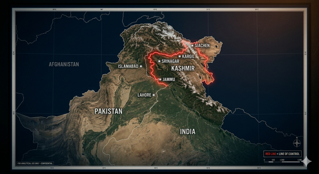 The Line of Control (LoC) — approximately 776 km of heavily militarised border created by the 1949 ceasefire — divides Indian and Pakistani-administered Kashmir. It is neither accepted as a permanent international border nor resolved as anything else. It is, simply, where the armies stopped in 1949. As long as it exists in its current form — as a temporary line that both sides treat as permanent but neither formally accepts — Kashmir will remain the trigger for the next escalation, as it has been for every previous one.