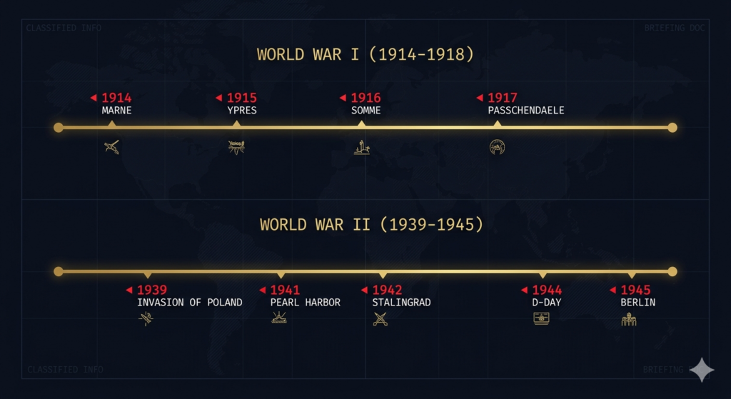 World War I (1914–1918) and World War II (1939–1945) remain the two deadliest military conflicts in all of human history. Together, they claimed an estimated 90–100 million lives across just three decades — reshaping every nation on Earth and defining the political map we live with today.
